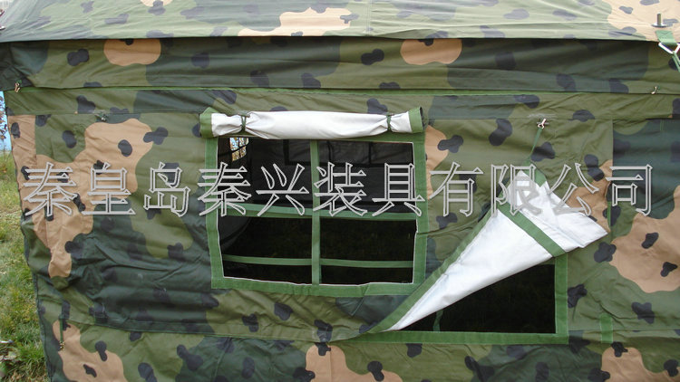 2. 帳篷面布采用600D草綠涂銀PVC牛津布,其抗拉、撕裂、耐老化、防雨等性能優良。